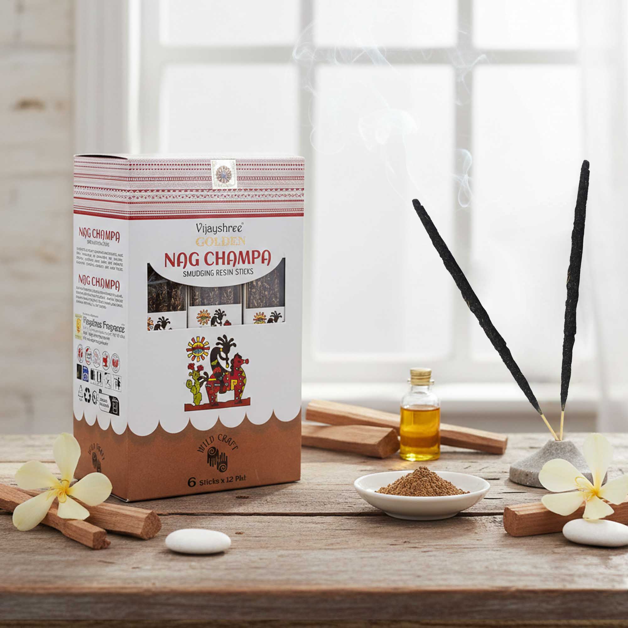 12x Varillas de Resina de nag champa dorada (30 g, paquete de 6)