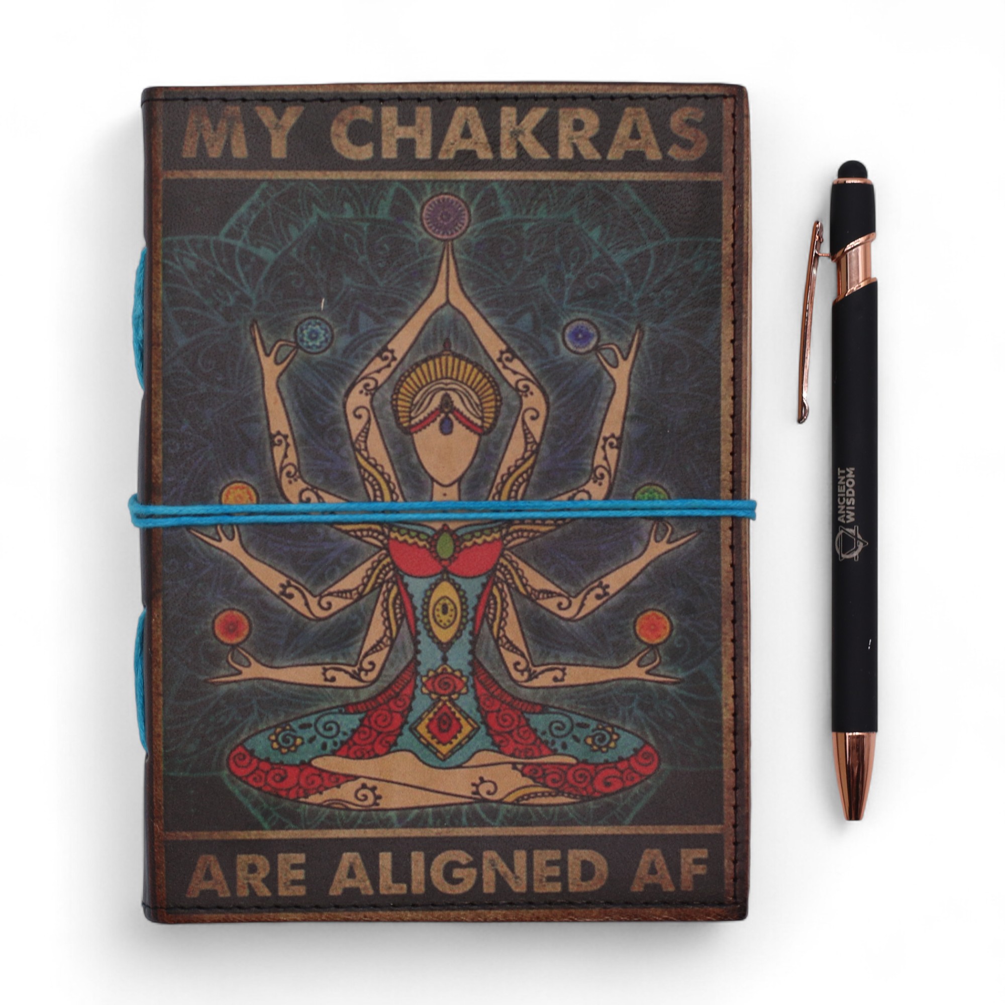 El cuaderno “Mis chakras están alineados” combina estilo espiritual y funcionalidad. Con una cubierta de cuero grabado, este cuaderno está pensado para quienes practican meditación, yoga o equilibrio energético.