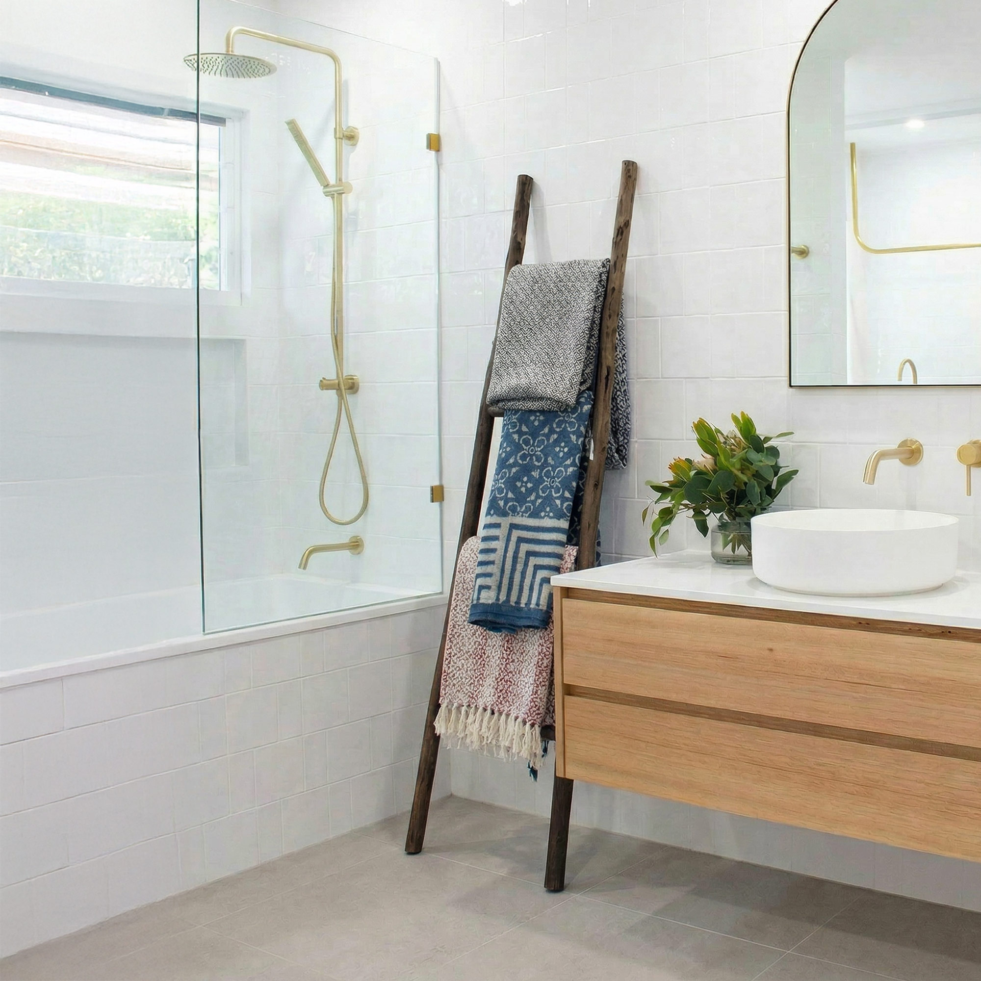 Con sus 1,5 metros de altura, esta escalera se convierte en un punto focal en cualquier showroom o tienda de decoración.