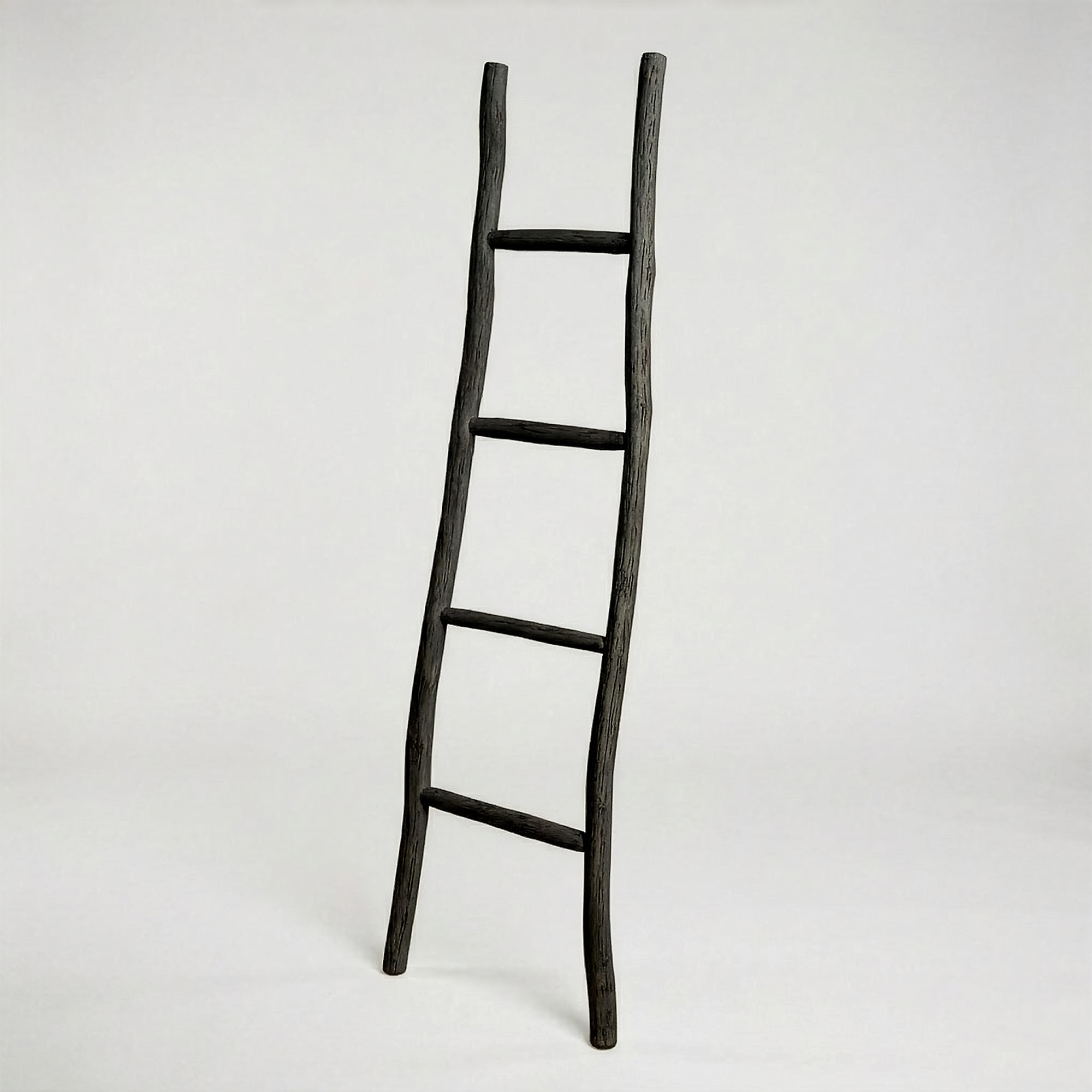 Nuestra Escalera de Madera de Kemu al por mayor en acabado negro estilo Japandi, aporta un aire de elegancia y orden a cualquier estancia.